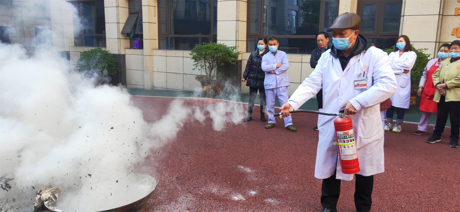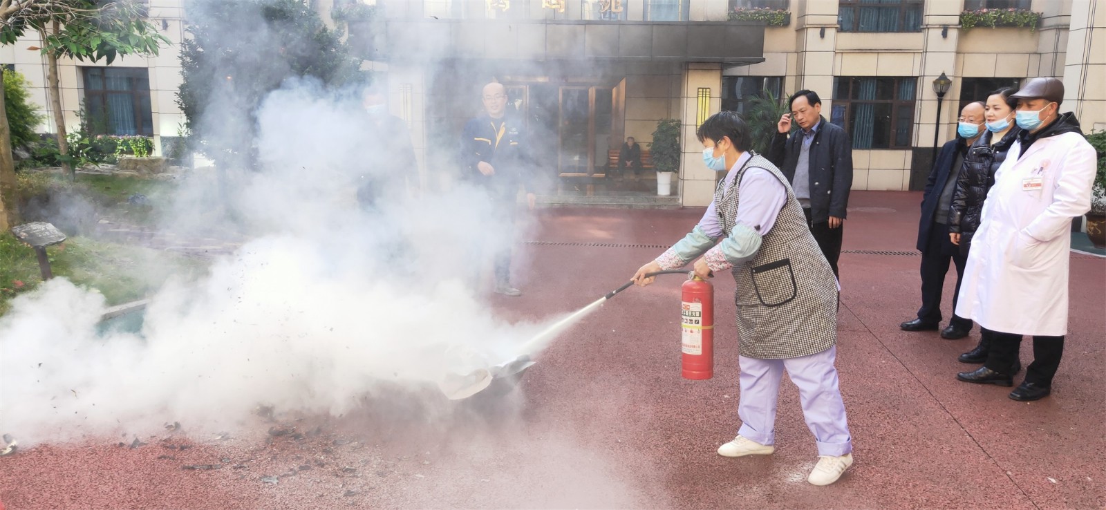向養(yǎng)護(hù)中心工作人員介紹常用手提式干粉滅火器的組成、判定滅火器時(shí)候處于正常狀態(tài)下的方法,使用滅火器的方法,并指導(dǎo)工作人員使用滅火器。