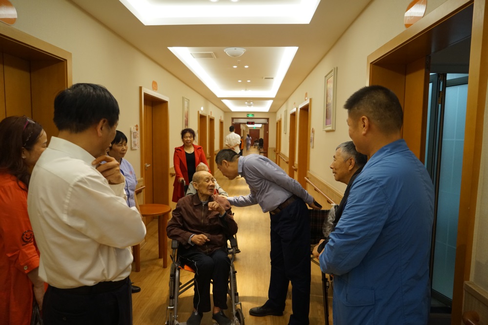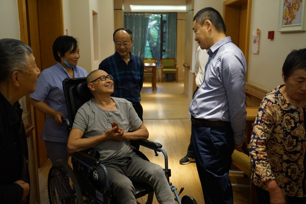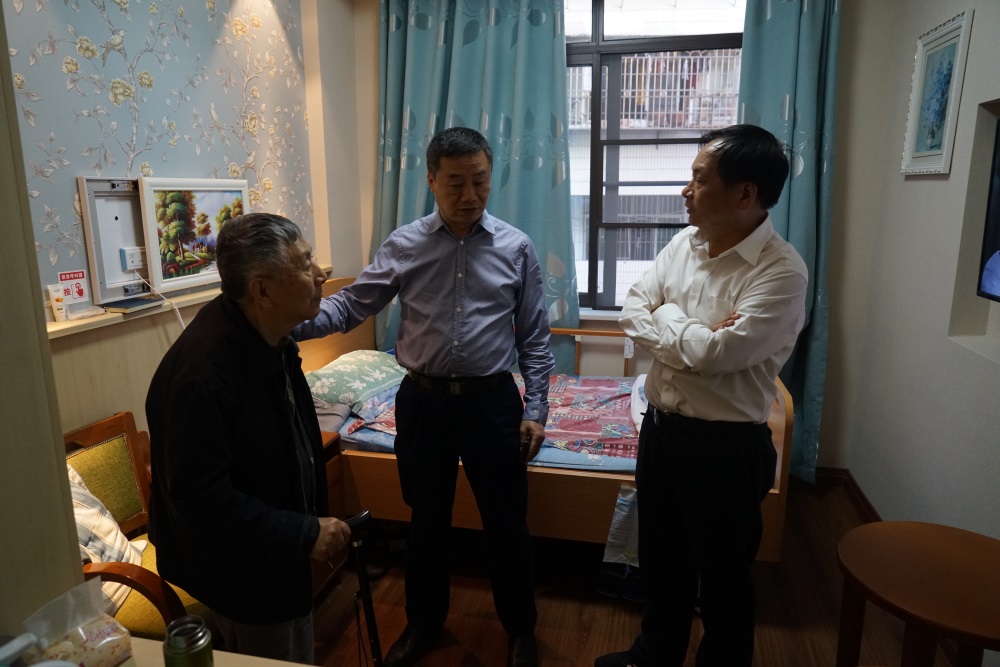 養(yǎng)護(hù)中心入住的長(zhǎng)者對(duì)著林局長(zhǎng)說(shuō):“我來(lái)這里半年了,這里的護(hù)理人員24小時(shí)隨呼隨到,工作任勞任怨,鶴鳴山老年養(yǎng)護(hù)中心真的很好”