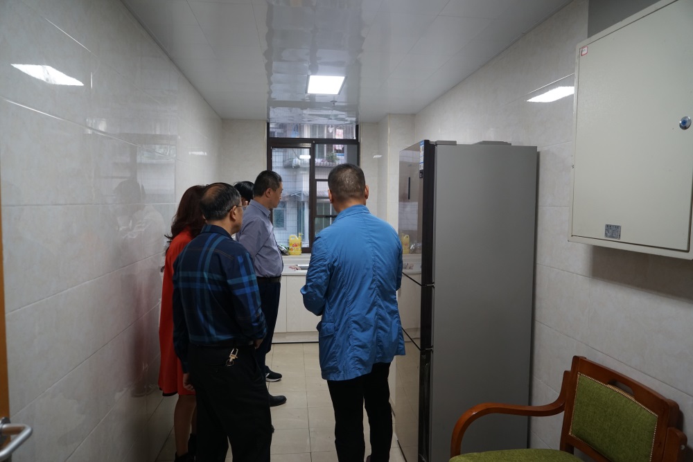 林局長(zhǎng)一行來(lái)到養(yǎng)護(hù)中心松鶴苑參觀,林局長(zhǎng)仔細(xì)檢查了食堂的食品留樣柜,并查看老人食譜,對(duì)養(yǎng)護(hù)中心老人伙食安排表示滿意,林局長(zhǎng)一行還參觀了影院、棋牌室、書(shū)畫(huà)閱覽室等功能區(qū)域。