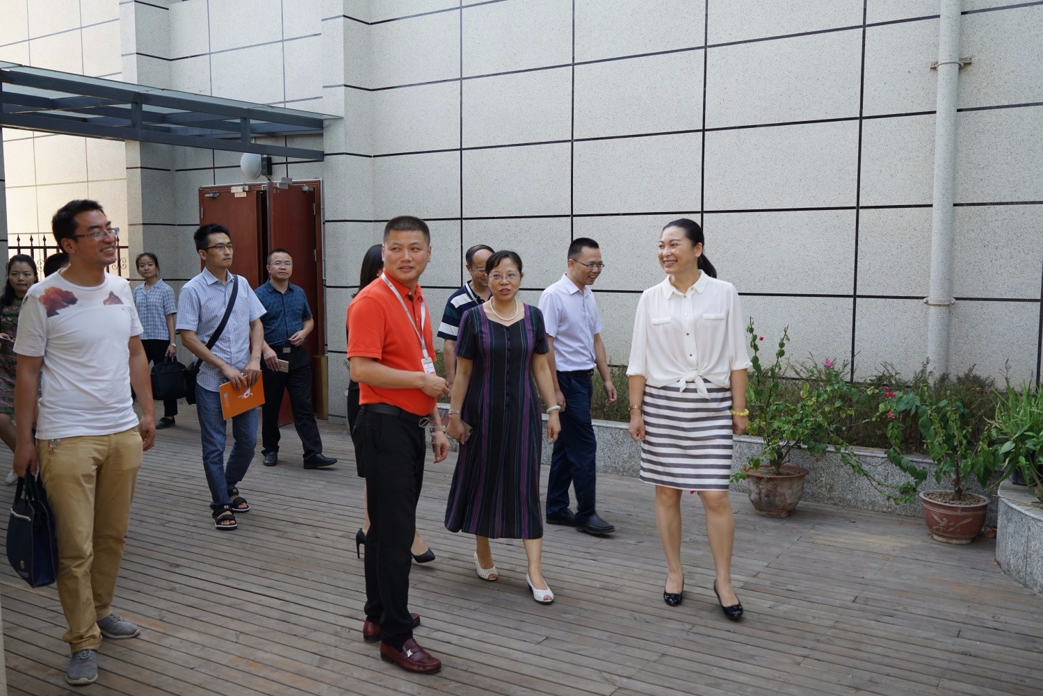 在陳鵬程董事長的帶領(lǐng)下參觀日間照料中心